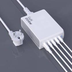 Ładowarka GaN Dudao A228EU z 1 portem USB-A i 4 portami USB-C - biała