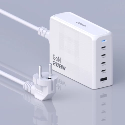 Ładowarką GaN Dudao A228EU jest wyposażona w najnowocześniejszą technologię GaN. Obsługuje technologię Power Delivery i moc do 228W, zapewnia więc niezrównaną szybkość ładowania dla Twoich urządzeń. Z 1 portem USB-A i 4 portami USB-C jest gotowa sprostać ładowaniu czterech urządzeń na raz. Dzięki wbudowanym poziom zabezpieczeń gwarantuje wydajne i bezpieczne ładowanie.