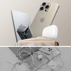- Ładuje trzy urządzenia jednocześnie, co oszczędza czas i przestrzeń. Jeden port USB-C, jeden port USB-A oraz wbudowany kabel USB-C zapewniają wszechstronność.