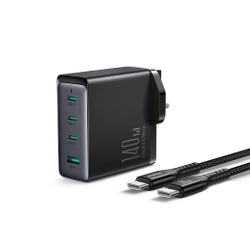 Szybka ładowarka UK GaN Joyroom JR-TCG05UK o mocy do 140W z portami 3x USB-C i 1x USB-A + kabel USB-C / USB-C o mocy do 240W i długości 1.2 m