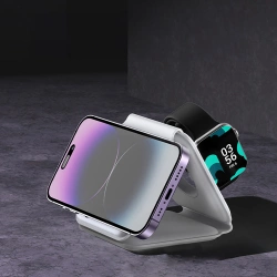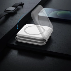 Bezprzewodowa ładowarka pozwoli Ci czuwać nad stanem baterii i pilnować, aby urządzenie elektroniczne było zawsze gotowe do pracy. Moc maksymalna ładowarki 15W pozwala na efektywne ładowanie baterii w urządzeniach takich jak smartfony, smartwatche oraz słuchawki bezprzewodowe. Ładowarka jest w pełni składana i może służyć jako uchwyt biurkowy dla Twojego telefonu.