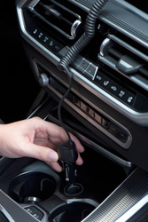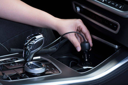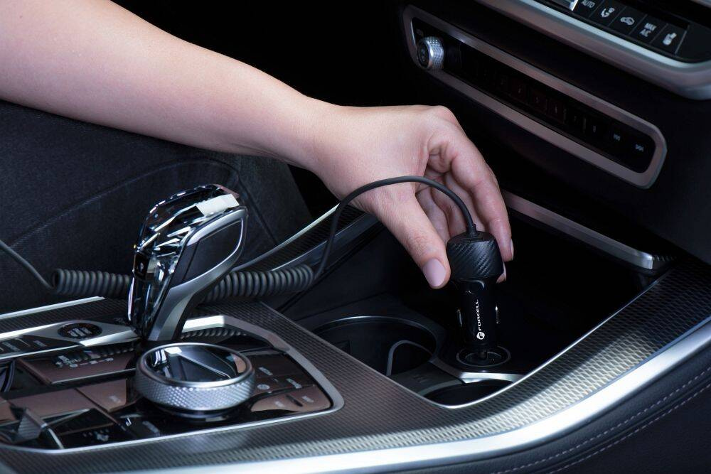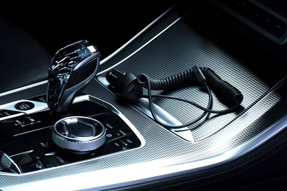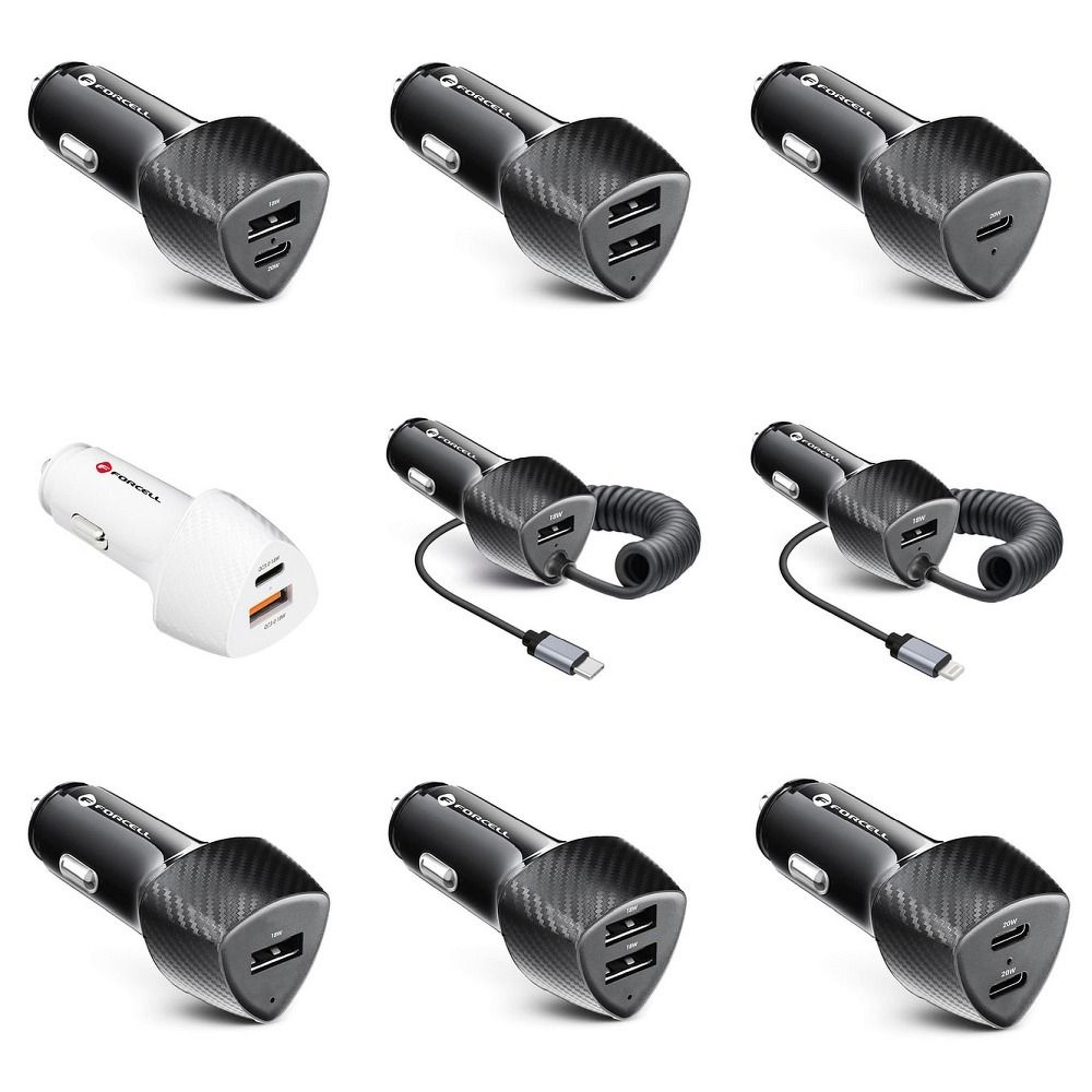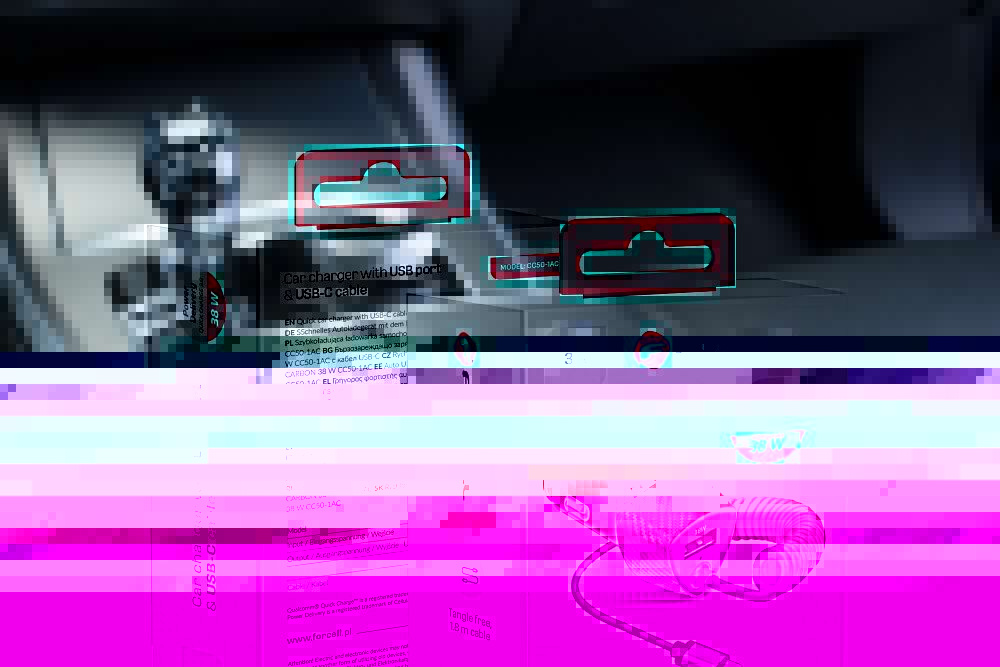 Ładowarka samochodowa z serii FORCELL CARBON z wbudowanym kablem typu C. Wyposażona w uniwersalny port USB. Wspiera protokoły szybkiego ładowania PD 3.0 i QC 3.0. Posiada kilkustopniowy system zabezpieczeń.
