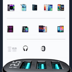 - Ładuje trzy urządzenia jednocześnie. Dzięki 3 portom USB-A ładowarka umożliwia szybkie i wydajne ładowanie wielu urządzeń w jednym czasie, eliminując potrzebę wyboru, które urządzenie naładować jako pierwsze.
