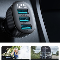 Ładowarka samochodowa Joyroom JR-CCD03 z wyświetlaczem cyfrowym i 3 portami USB