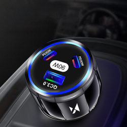 Ładowarka samochodowa Wozinsky WCCCA 2x USB-C 1x USB-A 90W PD QC - czarna