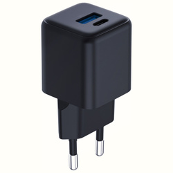 • Ładowarka sieciowa 3MK Hyper GaN Charger 20W 1xUSB-A 1XUSB-C PD QC4+ czarny