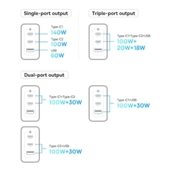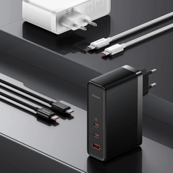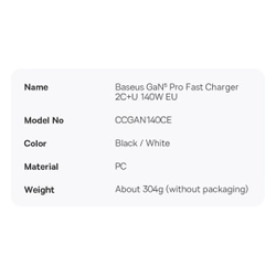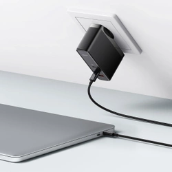 To nie koniec zalet ładowarki Baseus. Zastosowanie azotku galu pozwala ładować kompatybilne urządzenia 3x szybciej i bez ryzyka przegrzania. Co więcej, wyróżnia się kompaktową konstrukcją – jest o 25% mniejsza od ładowarki Apple 140W. Dodatkowo produkt wyposażono w niebieski wskaźnik informujący o jego statusie, a solidne wykonanie zapewnia trwałość i odporność na zużycie.