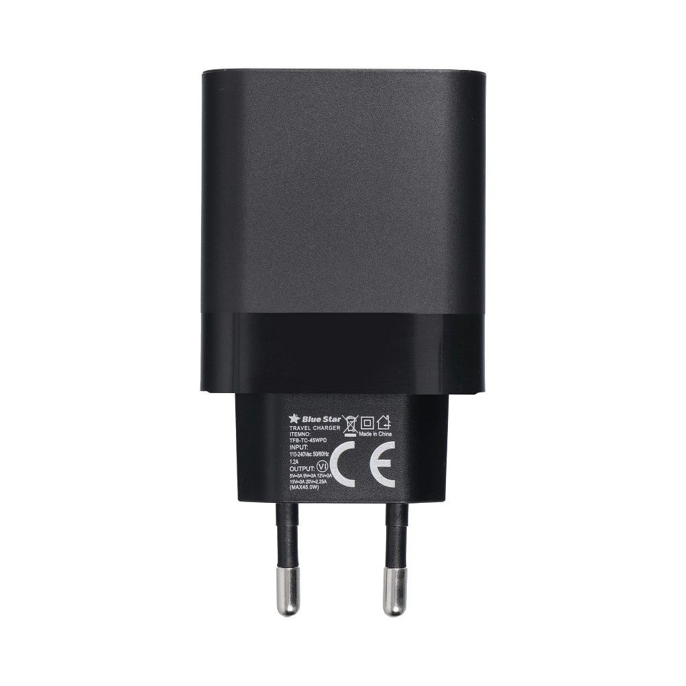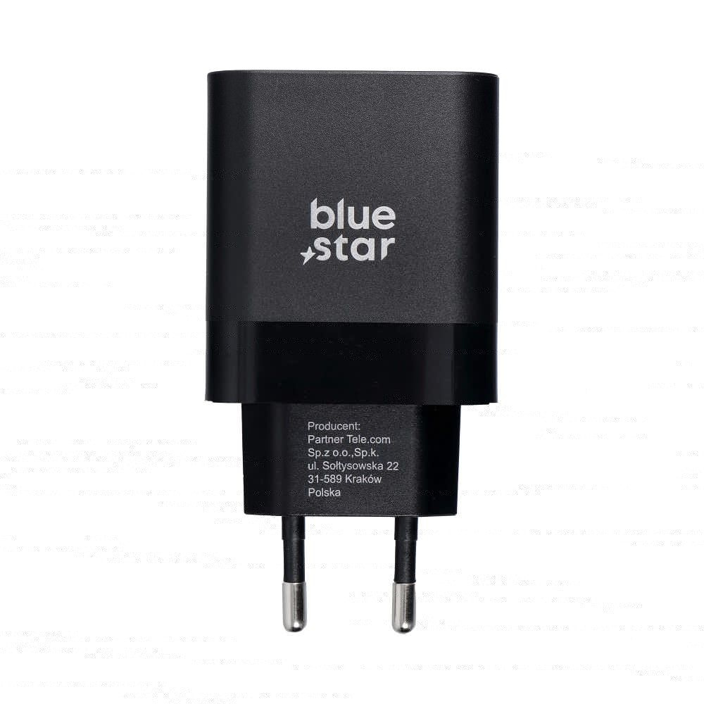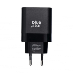 Ładowarka sieciowa Blue Star z funkcją szybkiego ładowania. Jest kompatybilna z Samsung Super Fast Charging 2.0 oraz obsługuje standardy ładowania Quick Charge i Power Delivery – wszystko to pozwala na błyskawicznie ładowanie urządzeń wspierających szybkie ładowanie.