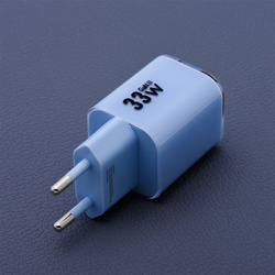 Kompaktowa ładowarka o mocy 33 W, ładująca w oparciu o nowoczesną technologię GaN3. Wyposażona w dwa porty: USB-A oraz USB-C, umożliwia szybkie i wydajne ładowanie. W zestawie znajduje się wytrzymały, elastyczny, silikonowy kabel.