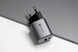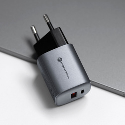 Ładowarka sieciowa Forcell wykonana w technologii GAN, o łącznej mocy 33 W. Obsługuje standardy ładowania Quick Charge 4.0 i Power Delivery, co pozwala na błyskawiczne ładowanie telefonów i tabletów wspierających szybkie ładowanie. Dwa porty – USB-A i USB-C – umożliwiają ładowanie dwóch urządzeń jednocześnie.