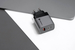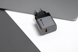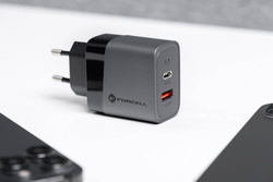 Ładowarka sieciowa Forcell wykonana w technologii GAN, o łącznej mocy 45 W. Obsługuje standardy ładowania Quick Charge 4.0, Power Delivery oraz Super Fast Charging 2.0 i pozwala na ładowanie zarówno telefonów i tabletów, jak i laptopów. Posiada dwa porty - USB-A i USB-C.