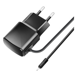 Ładowarka impulsowa to najwyższa jakość elektroniki. Posiada pełną zgodność z normami CE i LVD, a specjalny układ zabezpiecza przed przegrzaniem i skokami napięcia. Ładowarka sieciowa Blue Star: - Model TFK-TC-1100B - Napięcie wejściowe: 110-240V~ - Wejściowa częstotliwość prądu przemiennego: 50-60Hz, 0.3A - Napięcie wyjściowe: 5.0V , 600 mA - Moc wyjściowa; 3W - Średnia sprawność podczas pracy: >69.6% - Sprawność przy niskim obciążeniu (10%): > 59.6% - Zużycie energii w stanie bez obciążenia: < 0.1W - Długość kabla: 1,13m - Wtyczka: Nokia 6101 i inne kompatybilne - Kolor: Czarny Wymiary: A: 8 cm B: 10 cm C: 3 cm D: 13 cm