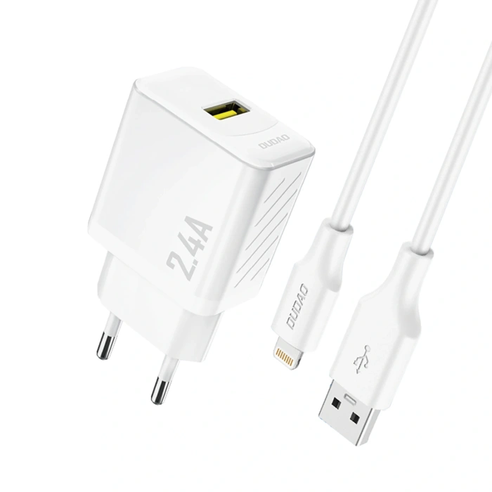 Ładowarka sieciowa Dudao A23LEU 2,4 A GaN EU USB-A z kablem USB-A - Lightning - biała