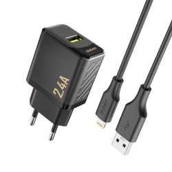 Ładowarka sieciowa Dudao A23LEU 2,4 A GaN EU USB-A z kablem USB-A - Lightning - czarna