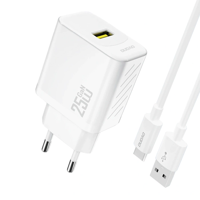 Ładowarka sieciowa Dudao A27STEU 25 W GaN USB-A z kablem USB-A - USB-C - biała