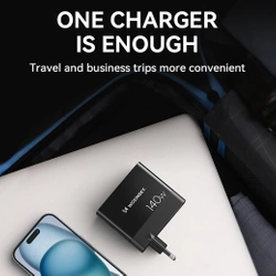 Ładowarka sieciowa GaN Wozinsky CGWCB 140W 3 x USB-C / 2 x USB-A - czarna
