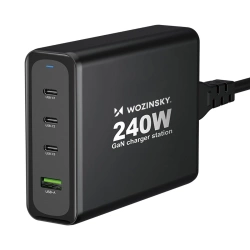 Ładowarka sieciowa GaN Wozinsky WGCSB 240W USB-A / 3 x USB-C - czarna