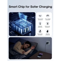 - Inteligentny chip zabezpieczający: Dzięki inteligentnemu układowi, ładowarka jest bezpieczna dla baterii i skutecznie zapobiega przegrzewaniu się. Spokojnie ładowanie bez obaw o bezpieczeństwo urządzeń.