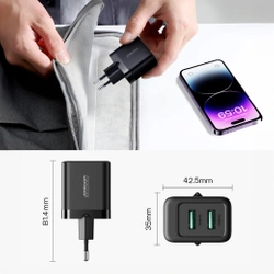 - Szybkie ładowanie podwójne: Ładuj dwie różne urządzenia jednocześnie, dzięki dwóm portom USB-A o łącznej mocy 12W (5V=2.4A). Efektywność w zasięgu ręki!