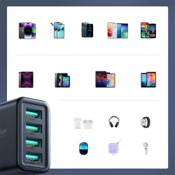Dzięki czterem portom USB możesz jednocześnie ładować aż cztery urządzenia, co pozwala zaoszczędzić czas i ułatwia korzystanie z wielu gadżetów jednocześnie.