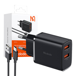 Ładowarka sieciowa Mcdodo CH-5072 USB-A*2, 12W + kabel USB-A do USB-C (czarna)