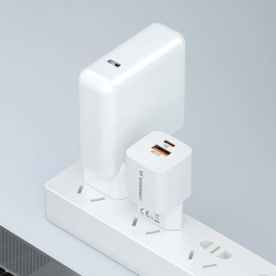 Ładowarka sieciowa Wozinsky CMWCW oferuje dwa porty USB: USB-A oraz USB-C, co pozwala na jednoczesne ładowanie dwóch urządzeń. Jest to szczególnie przydatne w sytuacjach, kiedy potrzebujesz szybko naładować zarówno telefon jak i tablet lub inne urządzenia.