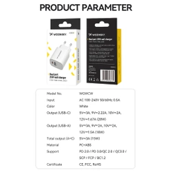 Ładowarka sieciowa Wozinsky WGWCW to must-have dla każdego, kto potrzebuje szybkiego i efektywnego sposobu na naładowanie dwóch urządzeń w tym samym czasie. Dzięki dwóm portom USB (USB-A i USB-C) ten model umożliwia ładowanie zarówno smartfonów, tabletów, jak i mniejszych urządzeń elektronicznych. Zbudowana z myślą o wydajności ładowarka obsługuje najszybsze technologie ładowania, gwarantując, że Twoje urządzenia są zawsze gotowe do działania. Małe wymiary urządzenia sprawiają, że jest ono idealne do użytku zarówno w domu, jak i w podróży. Bezpieczeństwo użytkowania zapewnia certyfikat CE i RoHS.