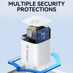 Ładowarka sieciowa Wozinsky WWCEAC została zaprojektowana z myślą o maksymalnym bezpieczeństwie użytkownika i urządzeń. Wbudowane zabezpieczenia chronią przed przepięciami, przegrzewaniem oraz przeładowaniem.