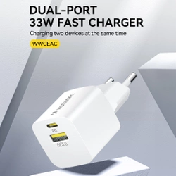 Ładowarka sieciowa Wozinsky WWCEAC z technologią GaN ze złączami USB-A i USB-C o mocy do 33W - biała