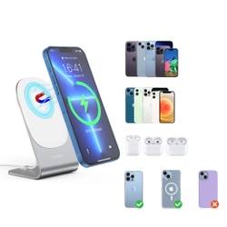 Choetech magnetyczna ładowarka bezprzewodowa Qi 15W (kompatybilna z MagSafe) biały (H046+T518-F) + stojak uchwyt srebrny