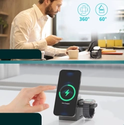 Ładowarka 3 w 1 to idealne rozwiązanie dla tych, którzy cenią sobie funkcjonalność i wygodę. Magnetyczna bezprzewodowa ładowarka Choetech T632-F posiada osobne cewki ładowania dla telefonów iPhone, słuchawek AirPods i zegarków Apple Watch, co pozwala na jednoczesne ładowanie wszystkich urządzeń.