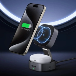 Ładowarka Ugreen W256 umożliwia jednoczesne ładowanie iPhone'a z serii 12-16 oraz AirPods 2/3 Pro. Wyjście USB-C pozwala na podłączenie dodatkowego urządzenia, co sprawia, że możesz ładować aż trzy urządzenia jednocześnie. Jest to szczególnie przydatne w sytuacjach, gdy potrzebujesz szybko naładować kilka urządzeń naraz.