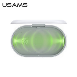 Usams US-ZB138 wielofunkcyjny, mini sterylizator UV z funkcją bezprzewodowego ładowania smartfonów.