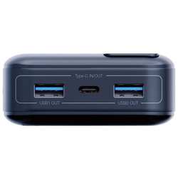 Powerbank posiada dwa porty USB-A, jeden port USB-C i jeden port micro USB.