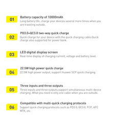 - Szybkie ładowanie - Powerbank obsługuje wiele standardów szybkiego ładowania m.in. SCP, Power Delivery i Quick Charge.