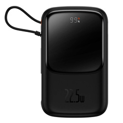 Baseus Qpow Digital Display powerbank z szybkim ładowaniem 10000mAh 22,5W QC/PD/SCP/FCP z wbudowanym kablem USB-C czarny