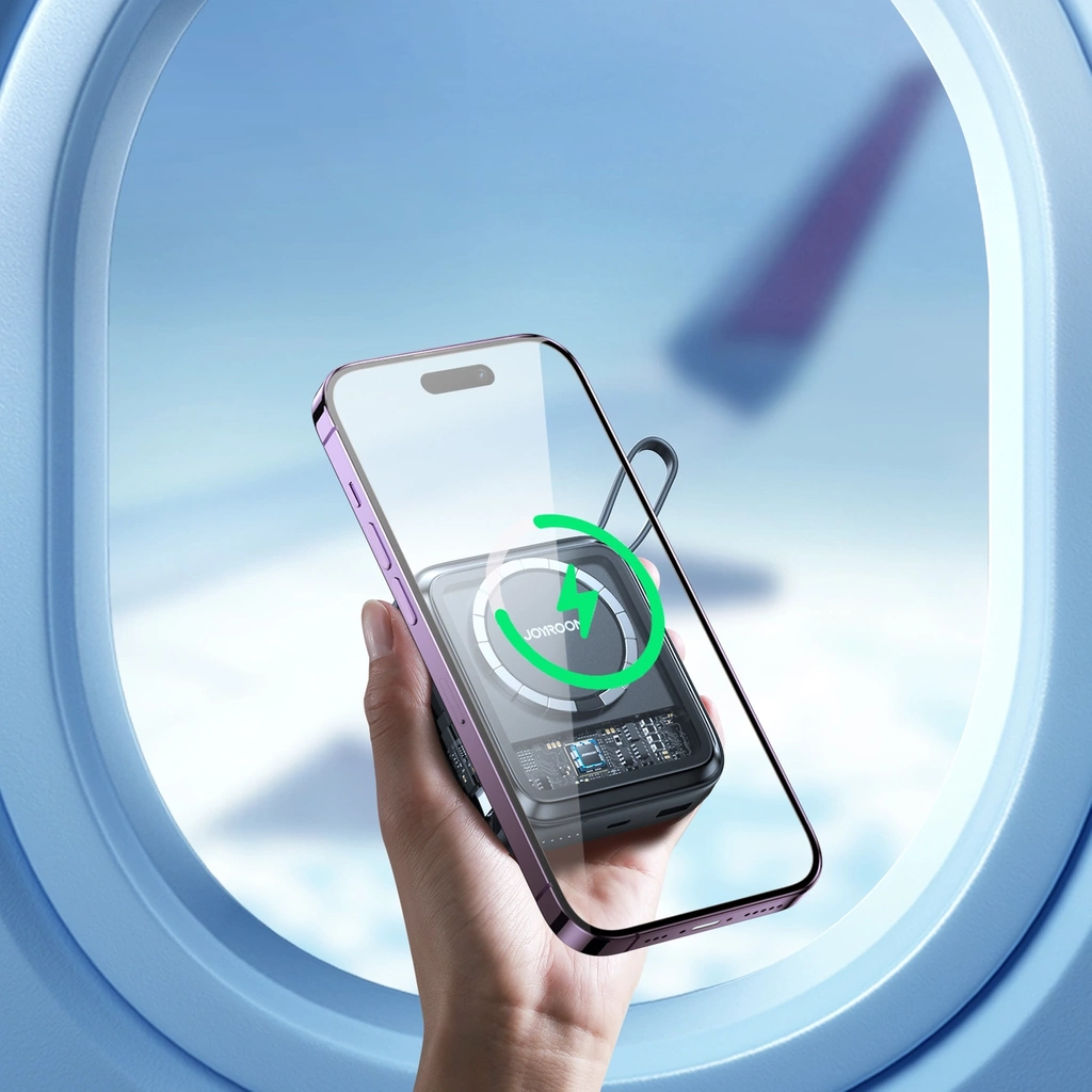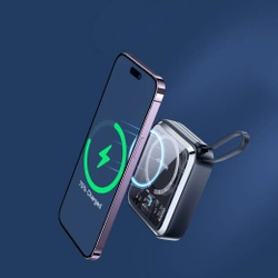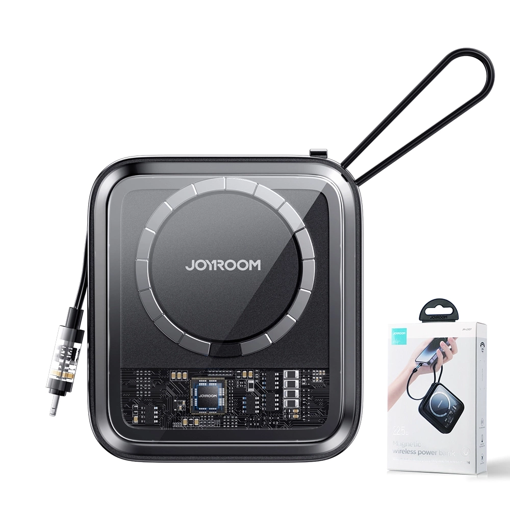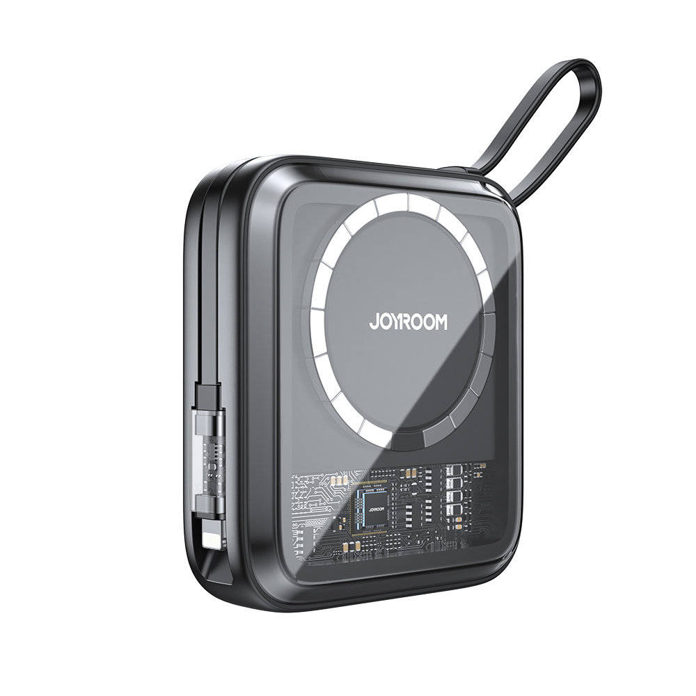 Powerbank indukcyjny 10000mAh o mocy do 22,5 W Joyroom Icy Series JR-L007 z wbudowanym kablem Lightning – czarny