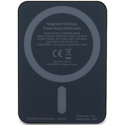 Bezprzewodowy Power Bank o mocy 5 000 mAh z pewnością zapewni Ci dodatkową moc dla Twojego telefonu zawsze wtedy, kiedy tego będziesz potrzebował. Pojemność baterii jest w pełni wystarczająca, aby naładować baterię Twojego smartfona. Niewielkie gabaryty i kompaktowy rozmiar sprawiają, że urządzenie zmieści się nawet do niewielkiej torebki czy kieszeni.