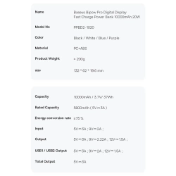 Powerbank Baseus Bipow Pro 10000mAh 20W czarny z kablem USB Typu A - USB Typu C 3A 0.3m (PPBD040201)