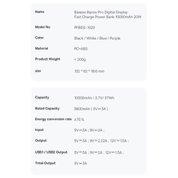 Powerbank Baseus Bipow Pro 10000mAh 20W fioletowy z kablem USB Typu A - USB Typu C 3A 0.3m (PPBD040205)