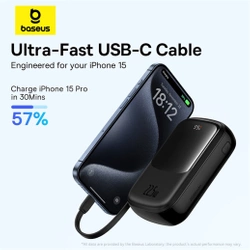 Mimo niewielkich rozmiarów powerbank kryje w sobie moc do 22,5 W. Możesz więc naładować swoje urządzenie mobilne szybko i gdziekolwiek jesteś. Jak podaje Baseus, za pomocą portu USB-A w 30 minut naładujesz np. smartfon Huawei Mate 60 Pro do poziomu 52%.