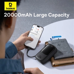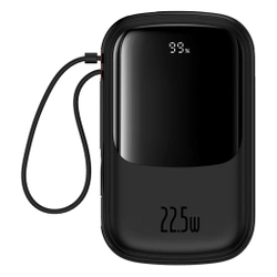 Powerbank Baseus QPow Pro+ o pojemności 20000 mAh, mocy do 22.5W z wyświetlaczem i wbudowanym kablem USB-C - czarny