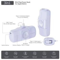 Mini powerbank Wozinsky WF16-YCS 5000mAh 15W USB-C z wbudowanym kablem USB-C i ładowarką do Apple Watch - fioletowy