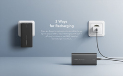 Możliwość ładowania za pomocą wbudowanej wtyczki EU AC w ciągu 6 godzin lub przez szybko ładujące złącze USB-C w ciągu 3,5 godziny.