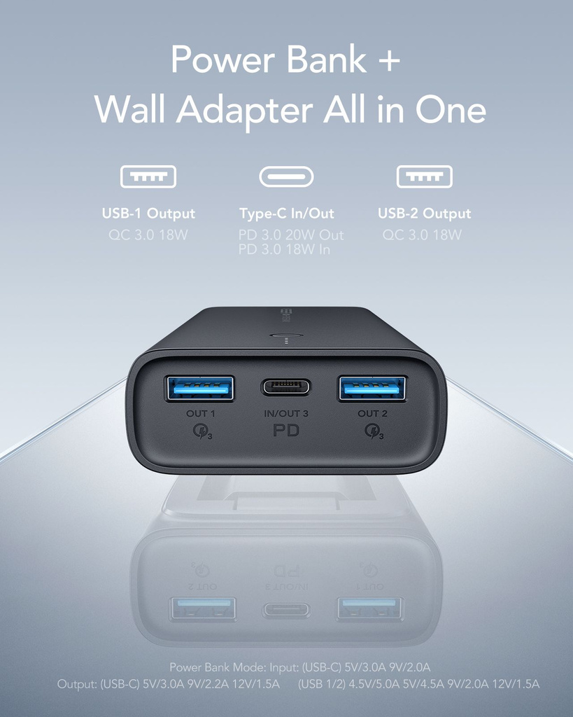 3 portów, w tym USB-C i 2x USB, obsługuje technologie szybkiego ładowania Power Delivery (20 W) i Quick Charge 3.0, a do tego umożliwia naładowanie w tym samym czasie trzech urządzeń, np. smartfona, tablet, podręczną konsolę czy słuchawki typu TWS. Dzięki USB-C bez problemu podłączysz najnowszy sprzęt na rynku.