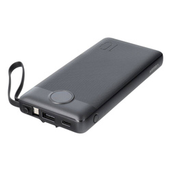 Minimalistyczna, smukła konstrukcja oraz niewielka waga sprawiają, że power bank nadaje się do użycia w trakcie podróży, a wyświetlacz LED poinformuje Cię o poziomie naładowania urządzenia. Ponadto wbudowana zawieszka w lewym górnym rogu ułatwi przenoszenie, a po wyciągnięciu może posłużyć jako kabel ze złączem Micro USB.