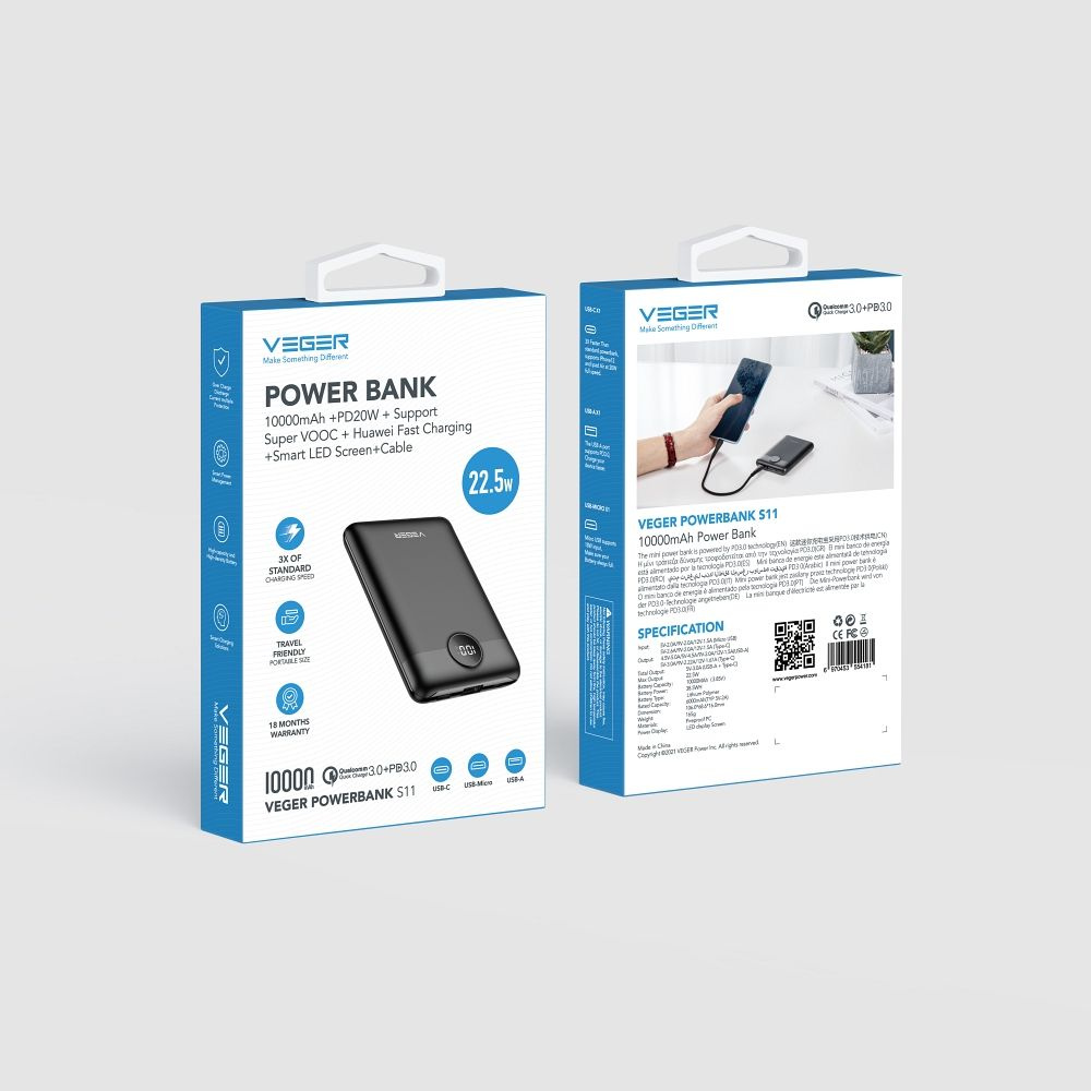 Power bank Veger S11 o pojemności 10 000 mAH to gwarancja szybkiego ładowania w dowolnym miejscu i czasie.