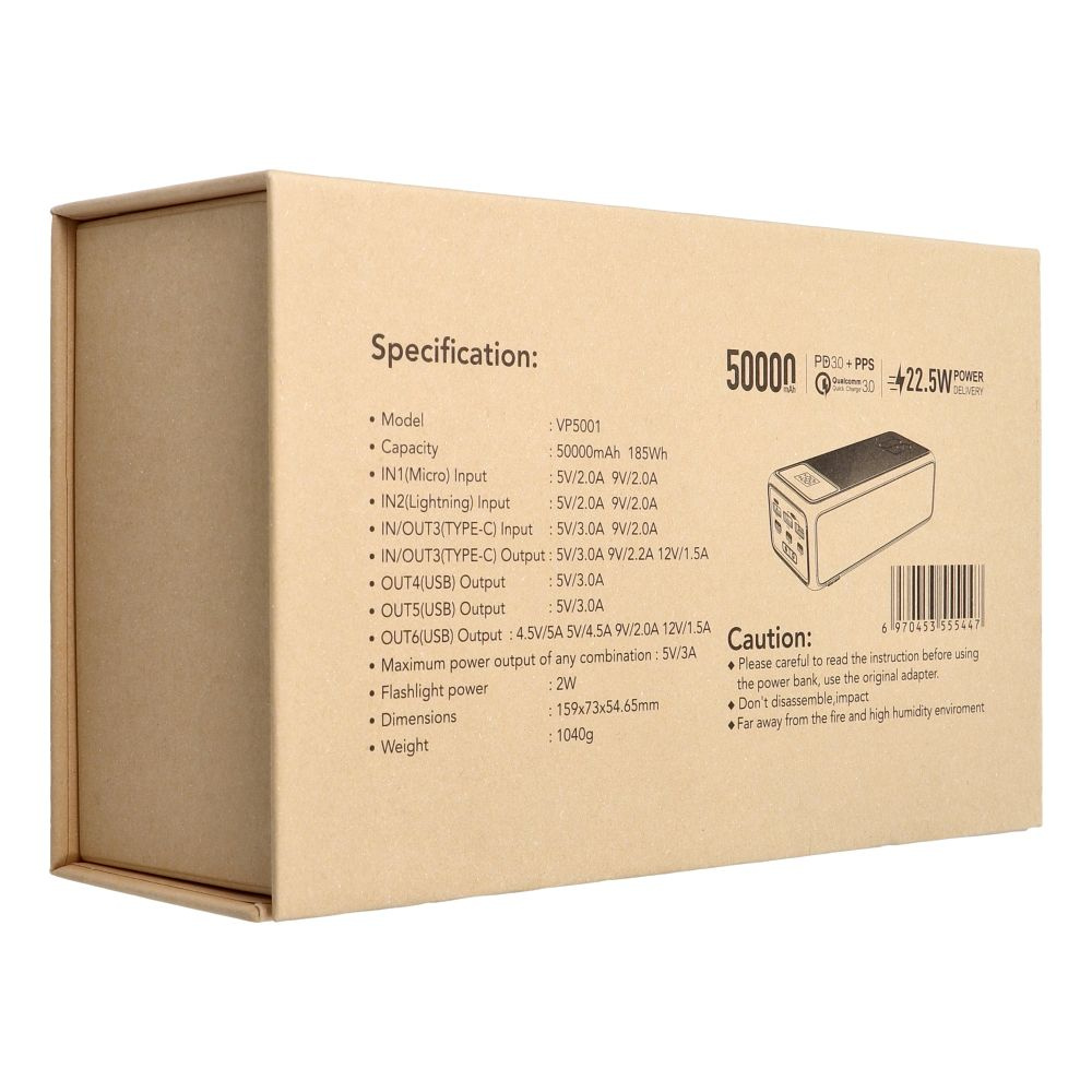 Powerbank Veger Tank Lite (W5001) PD QC3.0 5A 22,5W 50000 mAh czarny