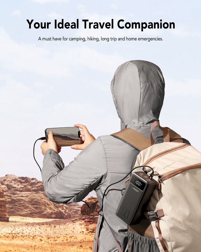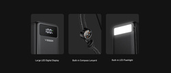 Minimalistyczna, smukła konstrukcja oraz niewielka waga sprawiają, że power bank nadaje się do użycia w trakcie podróży, a wyświetlacz LED poinformuje Cię o poziomie naładowania urządzenia. Dodatkowo posiada wbudowaną lampę LED oraz kompas.