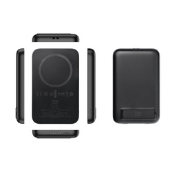 Minimalistyczna, smukła konstrukcja oraz niewielka waga sprawiają, że power bank nadaje się do użycia w trakcie podróży, a 4 diody LED poinformuje Cię o poziomie naładowania urządzenia. wbudowana podpórka pozwala ustawić power bank pods kątem aby móc używać smartfon podczas łądowania indukcyjnego.